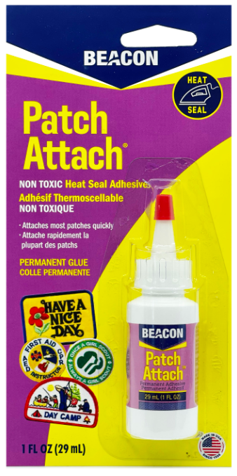 Patch Attach is a fast and easy way to permanently attach patches and appliques to clothing and gear. Great for boy scouts, sports teams, varsity letters, and more. Bonds almost any patch to almost any fabric without sewing. Patch attach will wash out before heat set with an iron, non-toxic and dries clear. The finished product is washable and dry cleanable. Permanent, washable, non-toxic, and the only truly dry cleanable glue for this purpose on the market today.