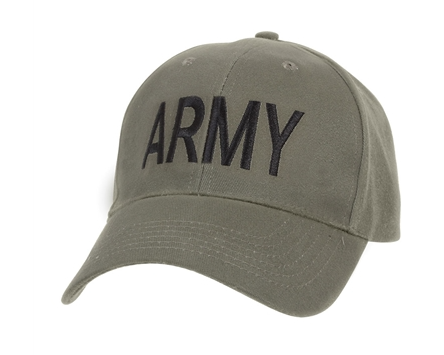 Rothco Olive Drab Army Embroidered Supreme Low Profile Adjustable Cap 9278. Army Supreme Low Profile Caps are made from a durable 100% brushed cotton twill and features the text ‘ARMY’ embroidered on the front panel. This military style baseball hat also features a hook and loop closure in back for adjustability and a padded sweatband for added comfort.